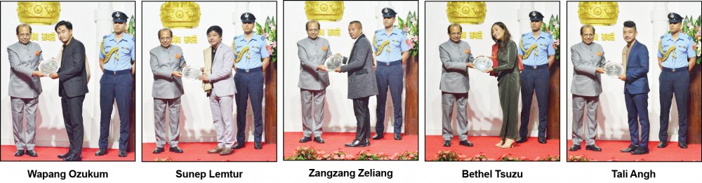 The 19th Edition of the Governor’s Award in the Field of Arts, Music and Literature 2021 & 2022 at the Dr Imkongliba Ao Hall, Raj Bhavan on September 27. The awardees are Wapang Ozukum for Arts (2021), Sunep Lemtur for Music (2021), Zangzang Zeliang for Music (2021), Bethel Tsuzu for Music (2022) and Tali Angh for Music (2022).