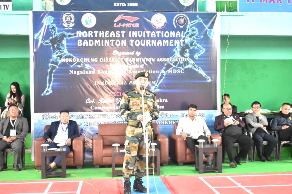 The 1st Li Ning North East Invitational Badminton Tournament organized by the Mokokchung District Badminton Association (MDBA) under the aegis of the Nagaland Badminton Association and Mokokchung District Sports Council commenced at Badminton Indoor stadium at Mokokchung on December 12 with Col Rahul Gurung, Kirti Chakra, Commandant, 12 Assam Rifles as the special guest.
