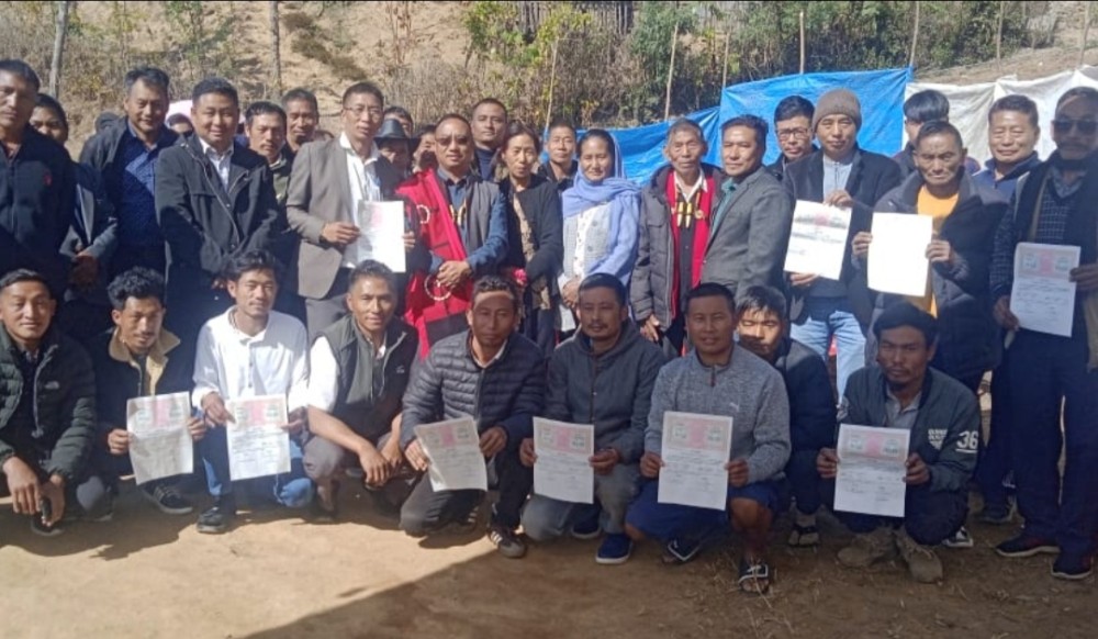 Shamator, January 17 (MExN): Marking the celebration of Tsüngkamnyo across the Yimkhiung-land, a significant event was held at Lower Soil Colony, Shamator town on January 17. Yanba Showuba, Advisor of Yimkhiung Tribal Council (YTC) and the children of late Showuba Hd GB gave away a plot of land area as “Gift Deed” to the twenty one “needy and displaced families” for settlement, stated a DIPR report.