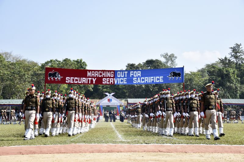 Parade contingents at the ceremonial attestation parade of the 56th batch held on November 5 at Nagaland Armed Police Training Centre (NAPTC) Parade ground, Chümoukedima.