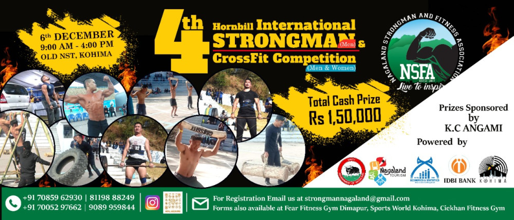 Kohima, November 24 (MExN): Under the aegis of the Nagaland Strongman & Fitness Association (NSFA) the 4th edition of Hornbill International Strongman and Cross Fit Competition will be held on December 6 at Old NST, Kohima for both Men & Women) from 9:00 AM till 4:00 PM.