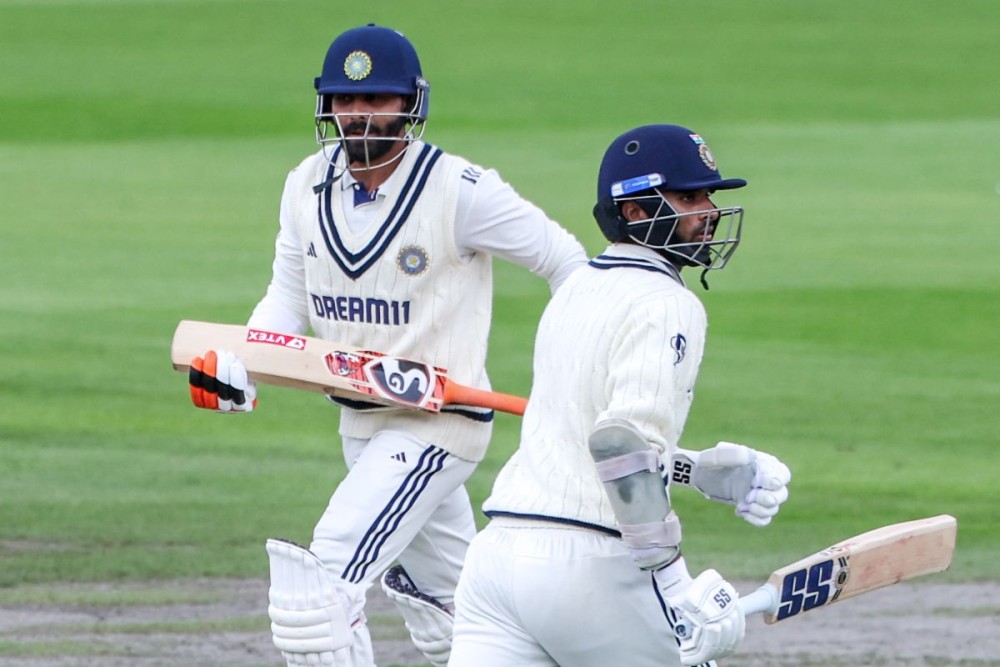Manchester: India's Ravindra Jadeja and Washington Sundar run between the wickets during Day 5 of the fourth Test match between India and England at Emirates Old Trafford in Manchester on Sunday, July 27, 2025. (Photo: IANS/Pankaj Nangia)