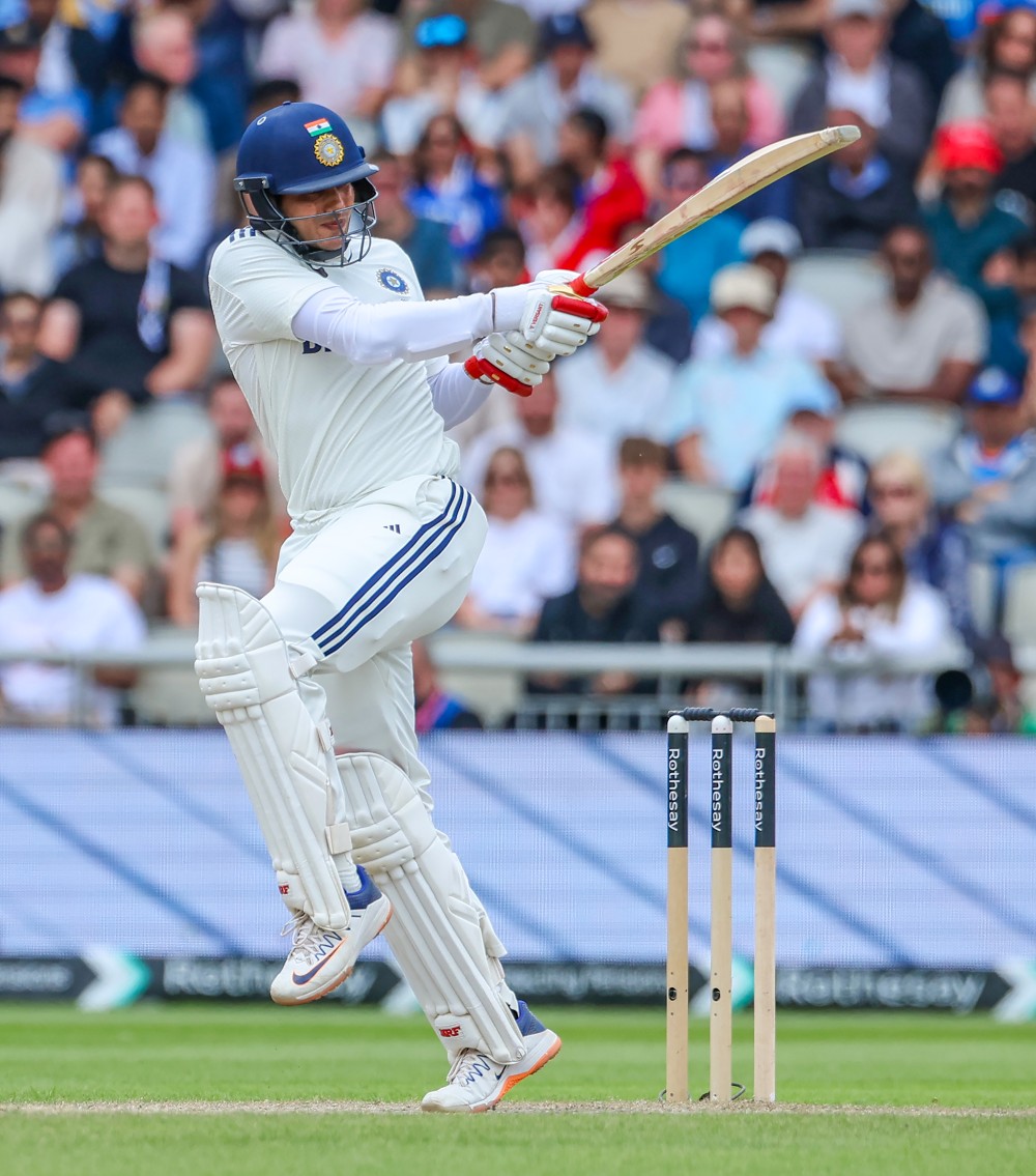 Manchester: India's captain Shubman Gill plays a shot during Day 5 of the fourth Test match between India and England at Emirates Old Trafford in Manchester on Sunday, July 27, 2025. (Photo: IANS/Pankaj Nangia)