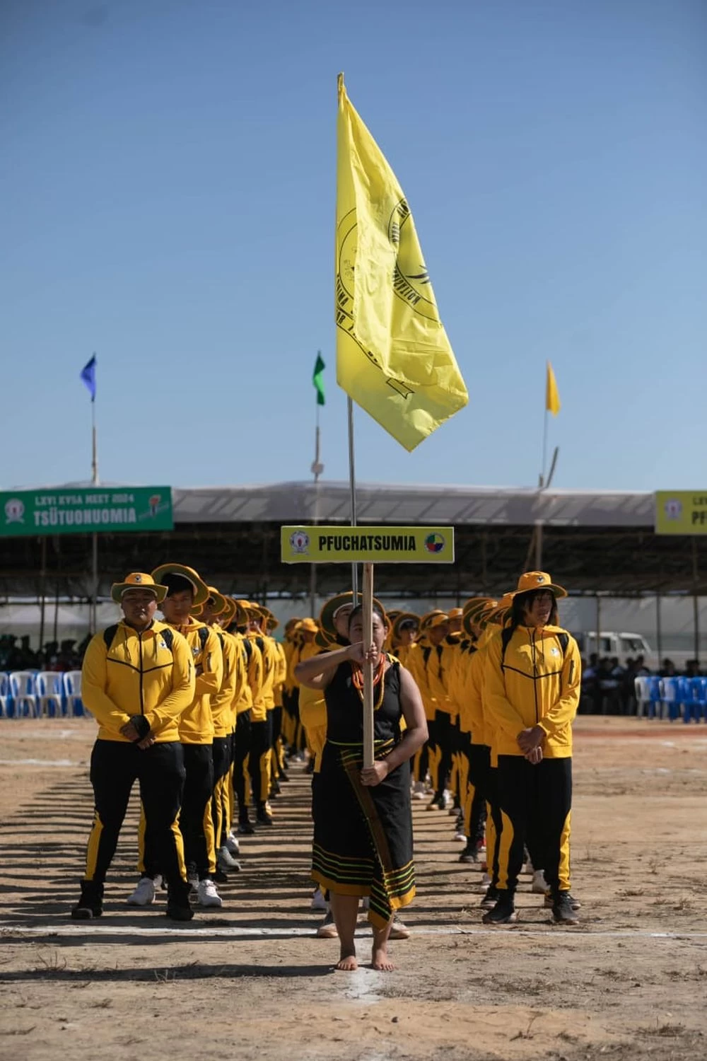 The function began with the auspicious lighting of the NVSA torch by Menuosetuo Yiese. The torch was carried across the village by accomplished athletes who had made their mark in the previous KVSA meets, including Medozhatuo Rutsa, Vizovor Liezietsu, Kezhaseluo-o Pienyii, Neiketuolie Belho, Rüduolhounuo Belho, Kehezolie Mere, Keneisezo Dzüvichii, Khriezelhounuo Keyho, and Menuosetuo Yiese. This year the KVSA Flag bearers were Menuokhrielie Solo, Kedilelhou Solo, Kevicü Rutsa, Vilietuo Rutsa, Rüüvolie Kire, Petekhriezo Yiese, Vivor Kesiezie, Mhasiletuo Yhome.