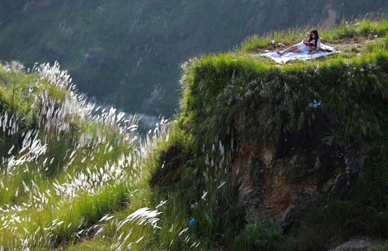 1st October 2020 A woman reads a book at Chobhar a picnic spot in Kathmandu, Nepal. REUTERS/Navesh Chitrakar