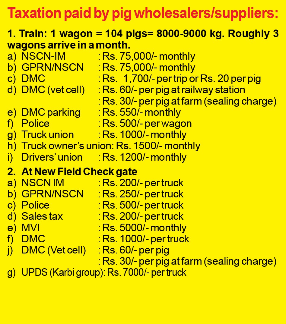 In a separate fact-finding report, the ACAUT has given a chart on taxes paid by pig wholesalers/suppliers to various groups and government agencies. (See Box)