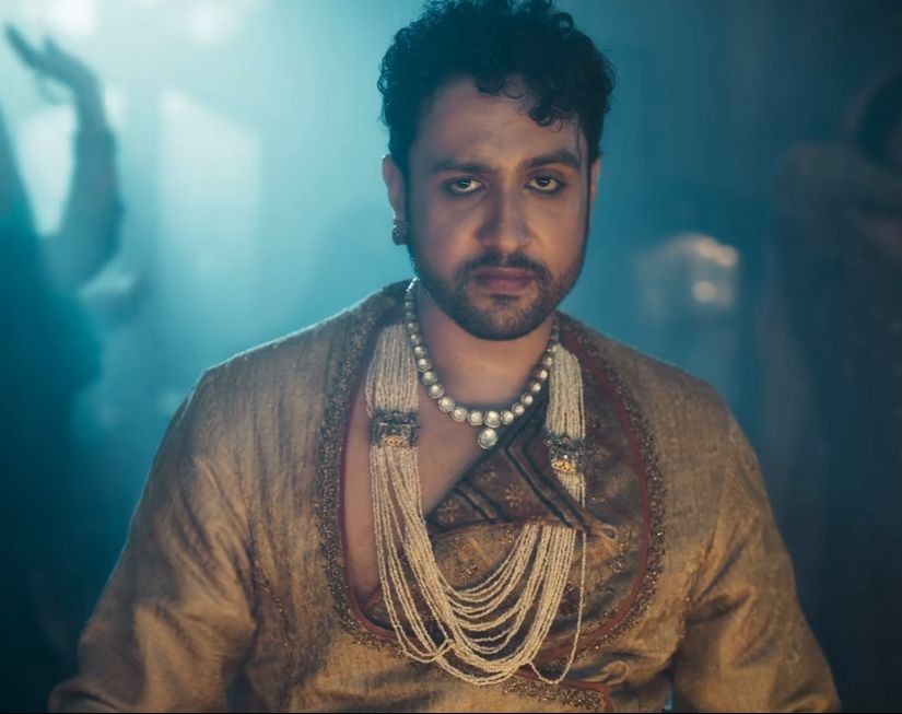 The character introduction promo shows Adhyayan in a drunk state wearing a golden kurta with courtesans dancing around him.
