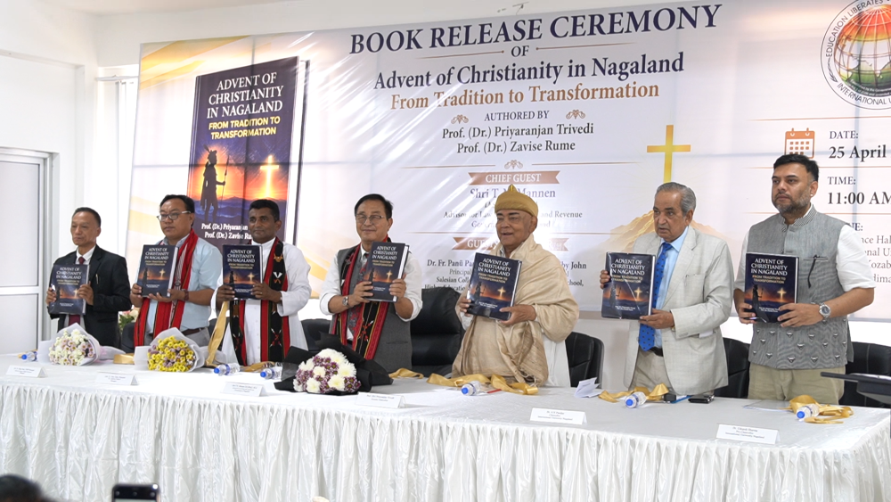 The book ‘Advent of Christianity in Nagaland,’ authored by Prof Dr Priyaranjan Trivedi and Prof Dr Zavise Rume, was released by MLA and Advisor for Law & Justice and Land Revenue, TN Mannen, on April 25 at International University, Chümoukedima.