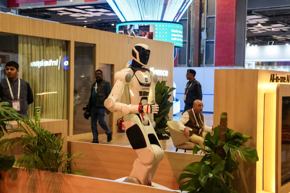 New Delhi: A robot on display at a pavilion during the India AI Impact Summit 2026 in New Delhi on Thursday, February 19, 2026. (IANS/Prem Nath Panday)