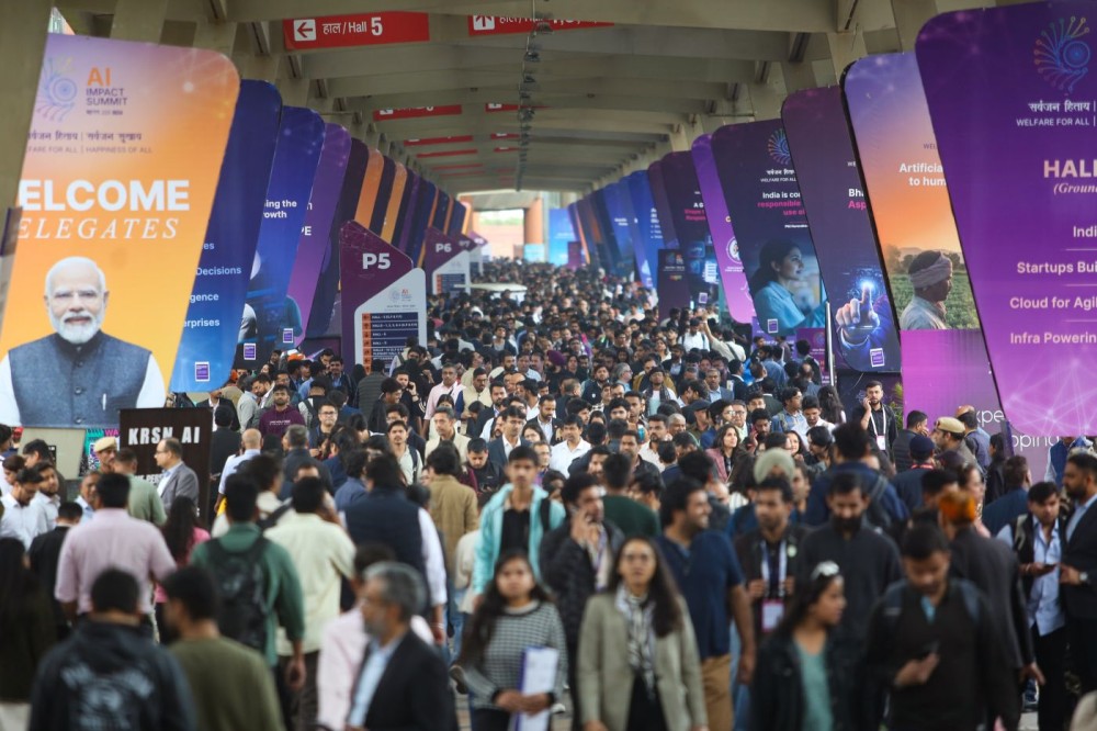 New Delhi: Visitors during the AI Impact Summit at Bharat Mandapam in New Delhi on Wednesday, February 18, 2026. (Photo: IANS/Prem Nath Pandey)