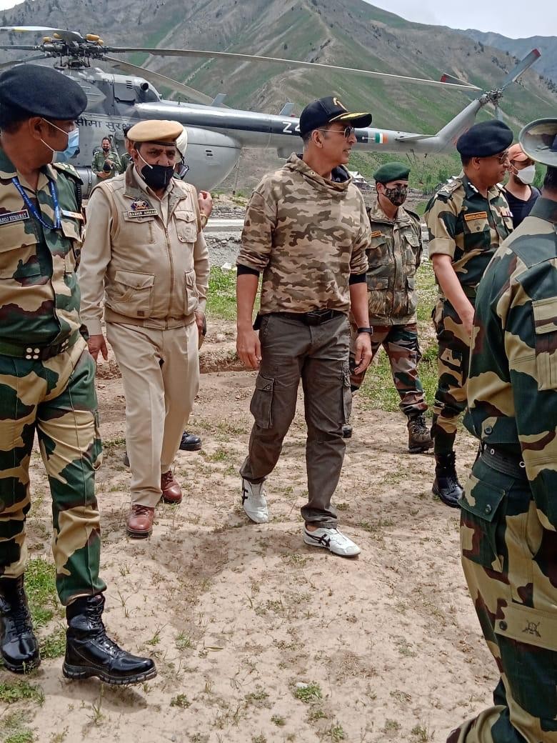 The actor reached Neeru village by a helicopter around noon and thereafter started interaction with locals and the deployed security forces.