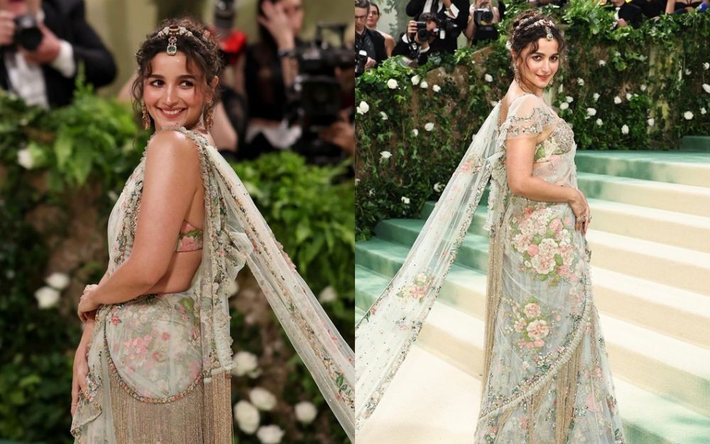 Alia shared her MET Gala look on Instagram, radiantly donning the saree on the carpet. The saree's colour palette paid homage to "nature’s beauty."