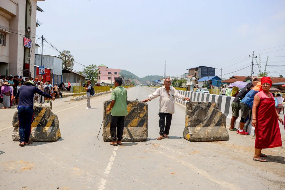 Members of the Meira Paibis and groups of women protesters were seen at several locations blocking roads and restricting vehicular movement.