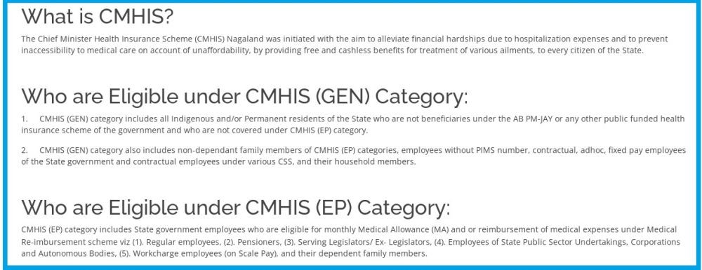 The NHPS, which is headed by the Chief Minister, is the governing body or executing agency for the CMHIS as well as the PM-JAY in Nagaland.