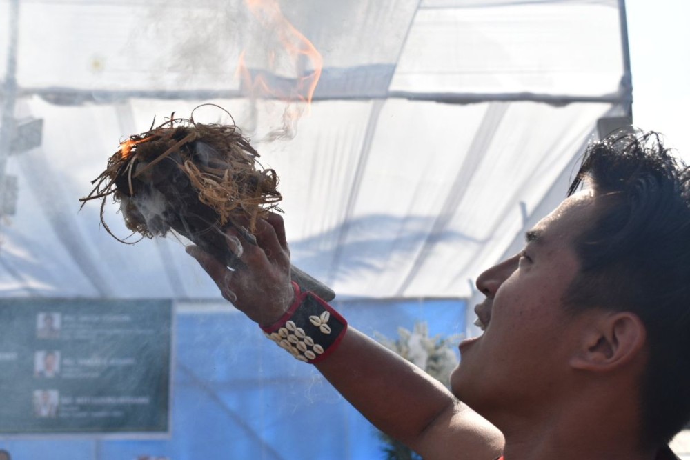 A youth participates in the traditional competition of Fire Making (Amikukla) during the 42nd biennial conference of the AASU on January 10.