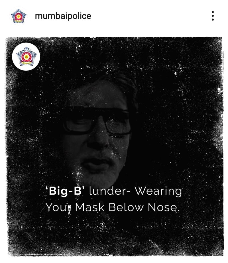 A meme featuring Amitabh Bachchan reminds people to wear masks properly. It reads: 'Big-B'lunder wearing your mask below nose.