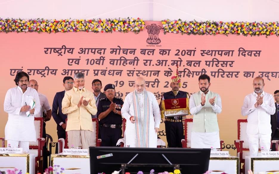 The Union Home Minister praised Chief Minister Chandrababu Naidu for propelling the state forward through sound administrative, financial, and developmental strategies while noting that Prime Minister Modi ensured all the help to the state. He was speaking at the 20th Raising Day ceremony of the National Disaster Response Force (NDRF) in Vijayawada.