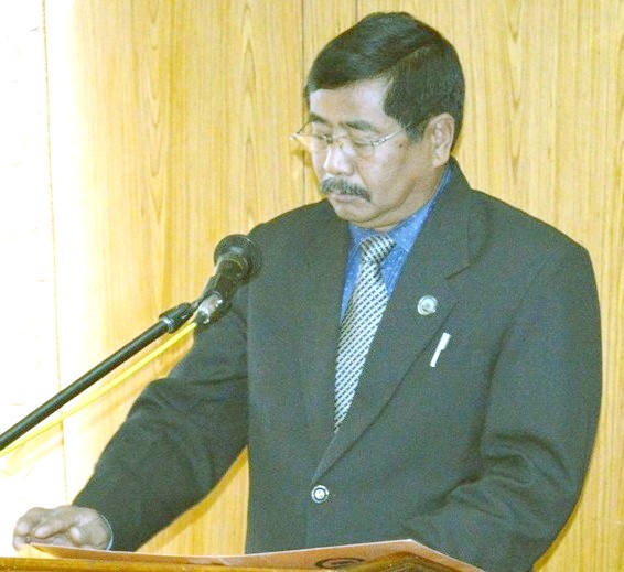 Minister E.E. Pangteang speaking at the ANEDEA programme at Kohima. (Morung Photo)
