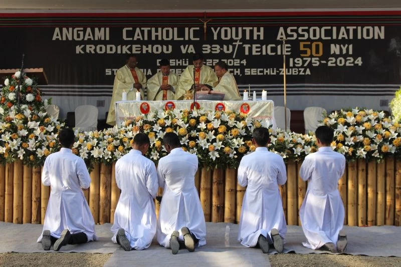 The second day of the Golden jubilee celebrations and 33rd Triennial convention of the Angami Catholic Youth Association (ACYA) commenced with the celebration of the Holy Eucharist at DBHSS Ground, Sechii- Zubza.