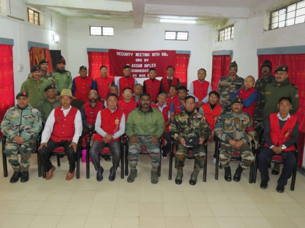 Dimapur, March 20 (MExN): Miao/Zunheboto Battalion of HQ 25 Sector Assam Rifles (AR), under the aegis of Inspector General Assam Rifles (North), conducted a security meeting with Gaonburahs (GBs) of Zunheboto town on March 20. A total of 18 GBs from 13 different villages attended the meeting, a state DIPR update informed. The main agenda of the meeting was to analyse the security situation before and after the Nagaland General Assembly Elections 2023, scrutinise the unchecked vulnerabilities and facilitate the drafting of the framework to mitigate any security threat, it said.