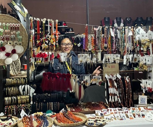 Bamboo Pavilion at Kisama was seen flooded with art and artifacts made by the countless artisans from all over Nagaland, during the recently concluded annual Hornbill Festival 2011. (Left) An interesting neck piece made of colorful beads (Right) Earrings made of wood for the style sirens of Nagaland. (Morung Photos)