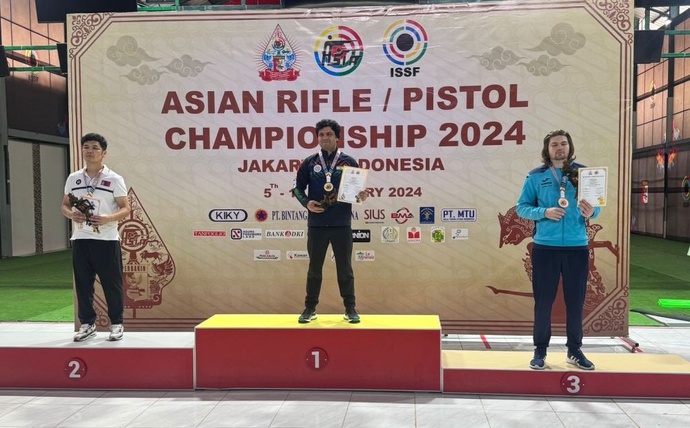 Yogesh shot 572 to win the standard pistol gold and also combined with Amit Kumar (565) and Om Prakash (553) for the team gold in the event. That has given India an unbeatable tally of 14 gold, 10 silver and eight bronze medals. Yogesh and company will turn out on Tuesday in the 25m Center Fire Pistol Men to round-off India’s successful engagement in the Asia Olympic Qualification Rifle/Pistol Jakarta.