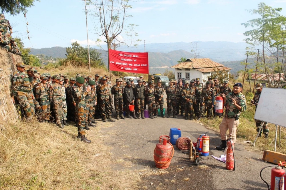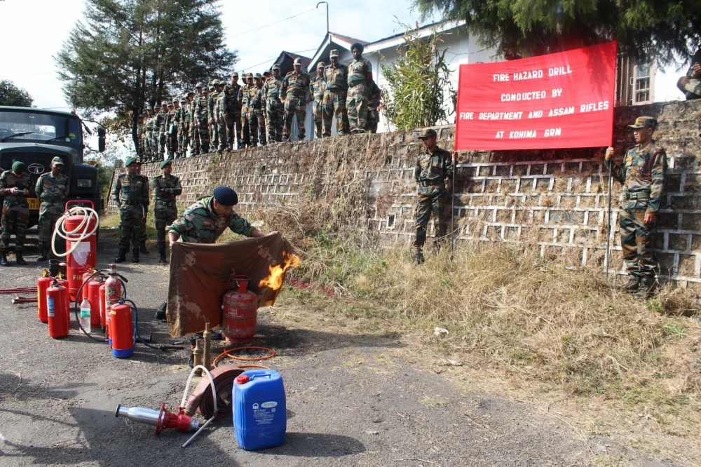Assam Rifles organised fire hazard drills in conjunction with Kohima Fire Station at Kohima on January 4. In a collaborative effort to enhance public safety and emergency preparedness, Assam Rifles conducted a comprehensive fire hazard drill in conjunction with Kohima Fire Station. This joint initiative aimed to assess and strengthen the collective response capabilities in face of potential fire emergencies.