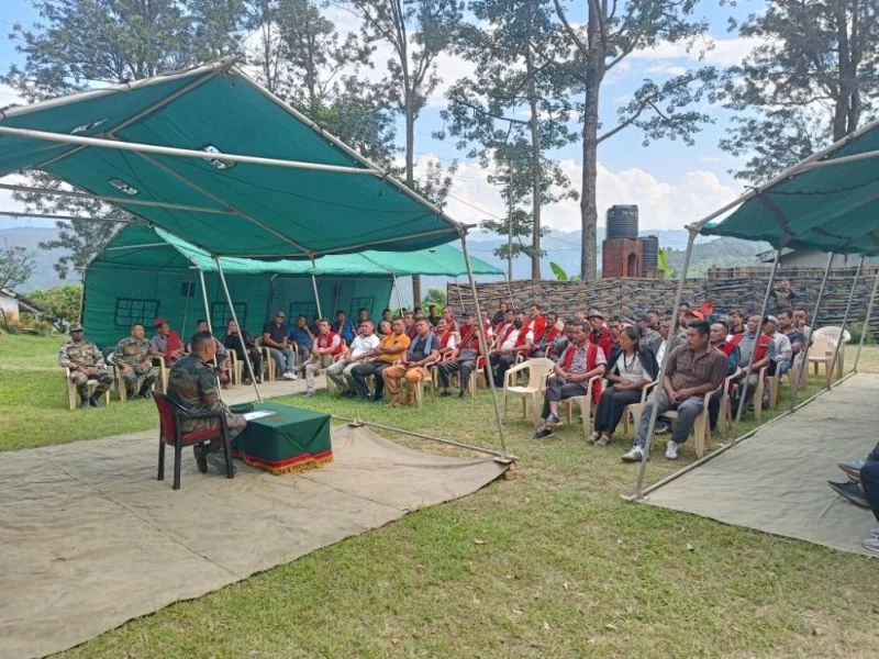 A security meeting with a total of 76 villagers, including the VCC, VDB Secretary, GBs and Youth from 11 Villages of Kezocha Range and Kikruma Area was held at Chakhabama on Oct 22. The aim of the security meeting was to discuss and update about the prevailing security situation existing in the area. Sharing of information for any untoward incidents, coordination and convergence on the issues of mutual interest between security forces and public were deliberately discussed during the conduct of the meeting.