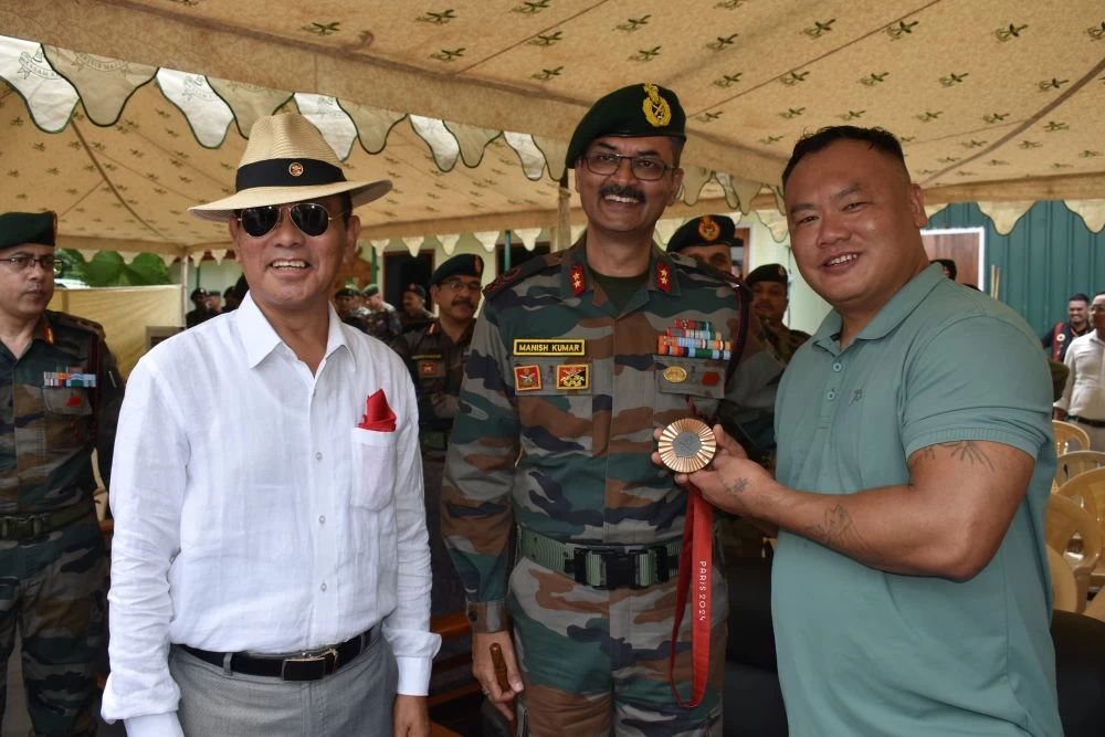 DIMAPUR, SEPTEMBER 21 (MExN): The Assam Rifles organised a felicitation ceremony at Kashiram Basti, Dimapur to honour Naib Subedar Hokato Sema, who brought laurels to the country by winning a bronze medal at the 2024 Paris Paralympic Games.