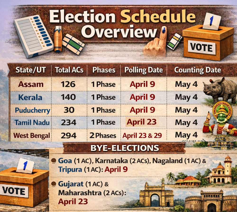 "Assam and Kerala will vote in a single phase on April 9. The UT of Puducherry will go to the polls on April 9. In Tamil Nadu, all 234 seats will head to polls in a single phase on April 23," CEC Gyanesh Kumar said at a press conference.