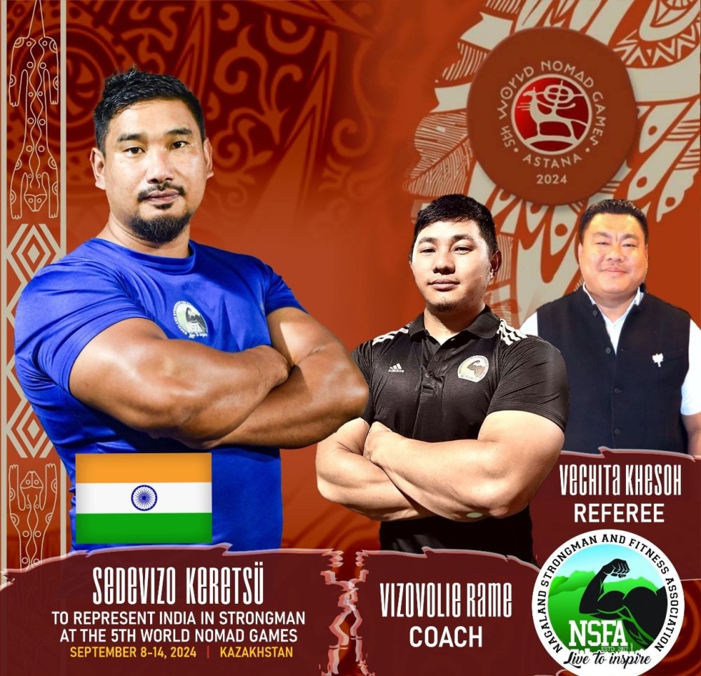 DIMAPUR, SEPTEMBER 3 (MExN): The Nagaland Strongman and Fitness Association on Tuesday informed that an athlete, coach and referee from Nagaland will represent India at 5th World Nomad Games 2024 in Strongman Event. This event will be held in Astana Kazakhstan from September 8-15, 2024.