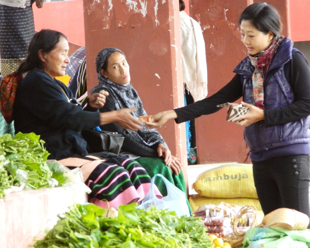 A woman pays after making purchase at the ATMA exhibition cum sales day here today at the Kohima Local Ground on May 6. (Morung Photo)