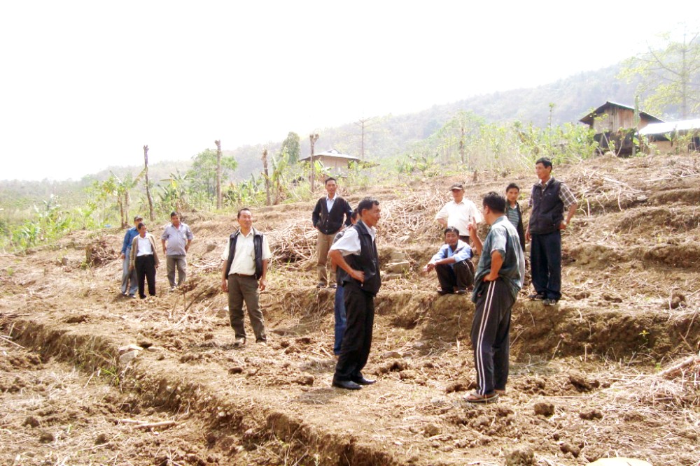 Group of farmers from Ongpangkong North Block at a farm in Longkong village during an exposure trip on March 27.