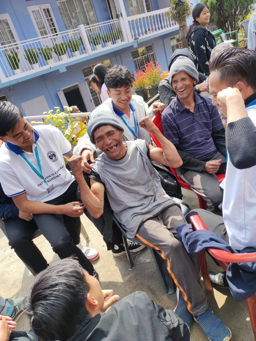 The Education Department, Don Bosco College, Kohima today visited Kohima Old Age Home, Meriema as part of the Departmental Field trip under the theme “Because we care.” The students extended haircuts, did manicure, pedicure, chopped fire woods, mopped their rooms and cleaned their compounds. They also spent time with them by sharing stories, singing and prayers. The department with student's fund also contributed rice and vegetables.