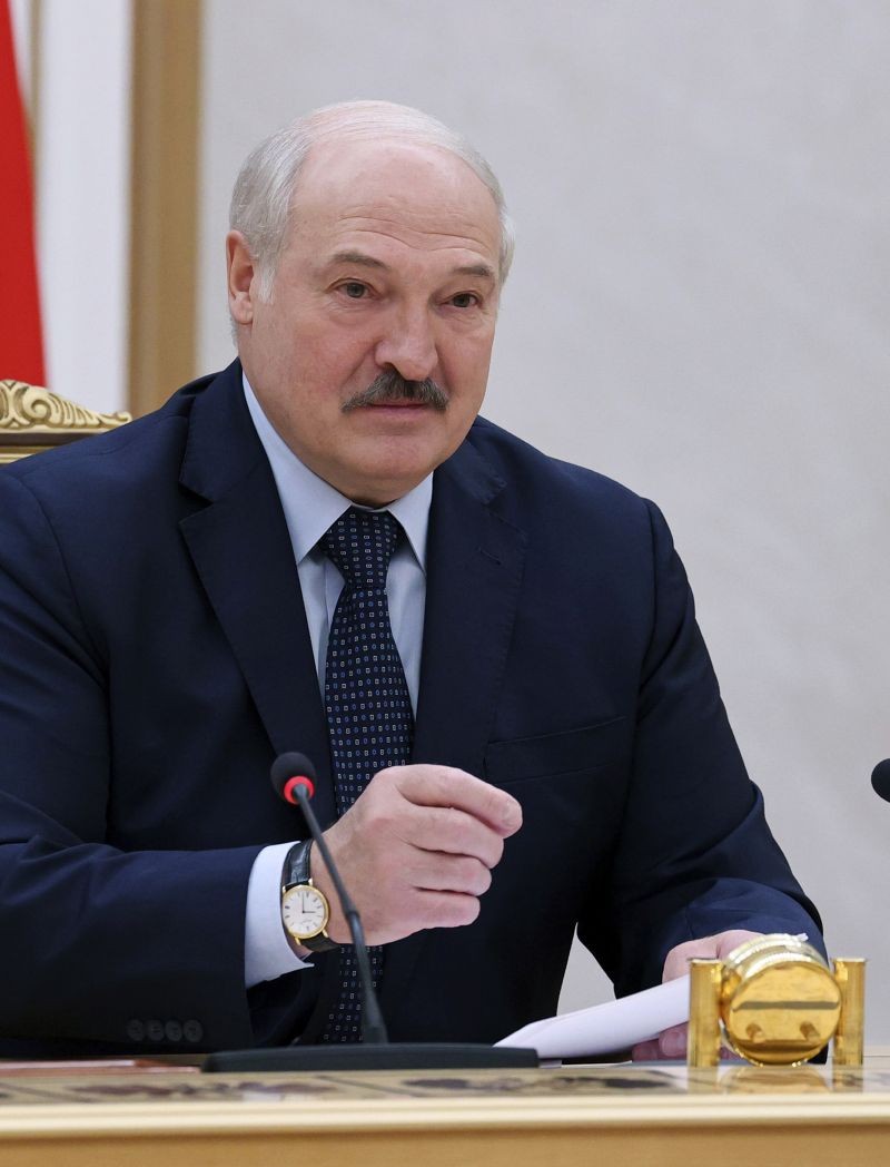 Belarus President Alexander Lukashenko gestures as he addresses Prime Ministers from the Commonwealth of Independent States during a meeting, in Minsk, Belarus on May 28, 2021. Belarus' authoritarian leader is heading to Russia to seek assistance amid a bruising showdown with the European Union over the diversion of a flight to arrest a dissident journalist. Belarusian President Alexander Lukashenko is set to meet Friday with Russia's Vladimir Putin at his Black Sea residence in Sochi. (AP/PTI Photo)