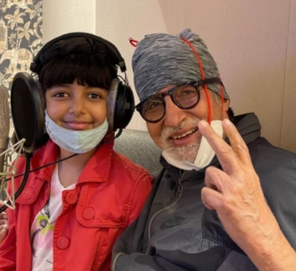 "When granddaughter and grandfather get in front of the mic in the Studio and make music," Big B wrote while sharing the picture.
