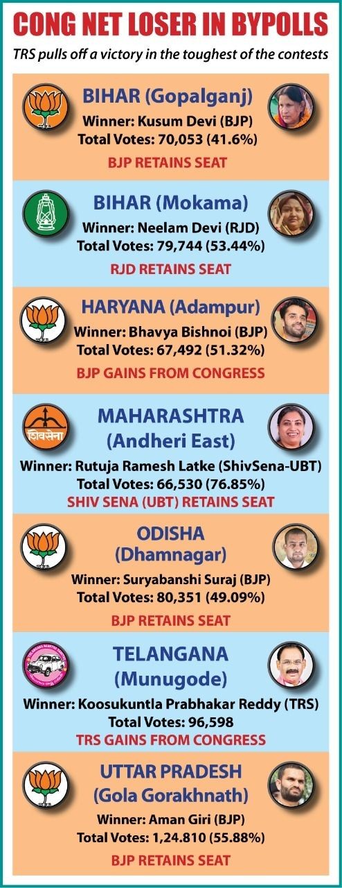 Congress also lost Telangana's Munugode seat to Telangana Rashtra Samithi (TRS).