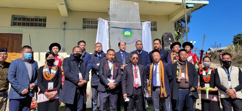 Nagaland CM Neiphiu Rio and others after unveiling platinum jubilee monolith of CSU at Phek town on February 15. (Morung Photo)