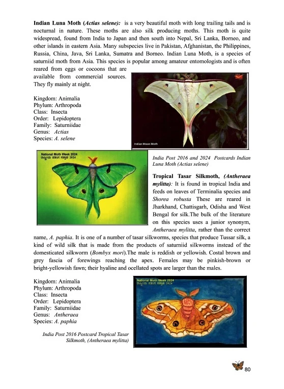 The book “Butterflies and Moths of India on stamps” is a unique attempt made by M.Lokeswara Rao IFS (Retd,) Principal Chief Conservator of Forests and Head of the Forest Force (Retd.) to focus on philatelic material issued by India. It narrates the story of different species of Butterflies and Moths, their habitat destruction and conservation status. The book is divided into seven chapters with the chapters Butterfly on stamps, Butterfly on Postcards, Moths on Postcards. Butterflies and Moths Pictorial Cancellations, Butterflies and Moths Migration, Butterflies and Moths Conservation and Bibliography. Philatelic materials used in the book are issued by India Post, more than 220 philatelic materials like stamps, postcards, Maximum cards, special covers etc., are used. The author emphasis the philatelic materials are great conservation and education tool to bring awareness among people, especially children, to protect Butterflies and Moths. The narrative is fascinating, besides being visual delight for any reader.The narrative is fascinating, besides being visual delight for any reader. It will be useful to Butterfly and Moth watchers, environmentalists, foresters, philatelists and students and people of all walks of life.