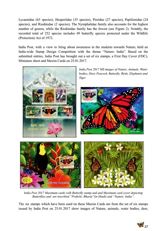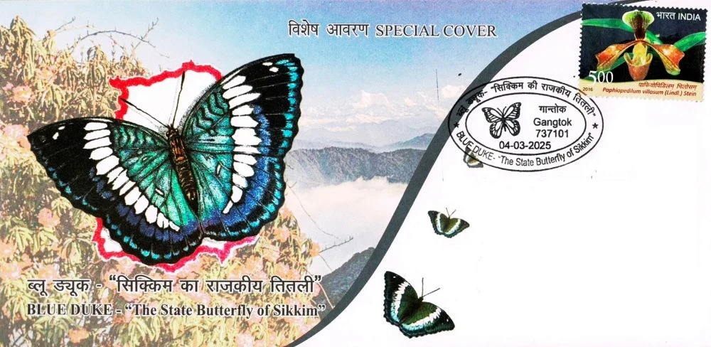 India, with its diverse landscapes and climates, is a haven for a stunning array of butterfly species. Across the country, dedicated butterfly parks offer visitors the chance to immerse themselves in the vibrant world of these delicate creatures. The state butterfly of Sikkim “Blue Duke” (Bassaronadurga) special cover released by India Post, Sikkim was included in the book.