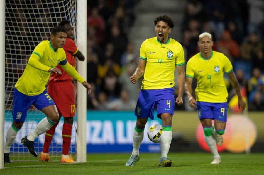 Brazil opened the scoring by Marquinhos's bullet header in the ninth minute from a corner by Raphinha. Richarlison extended the advantage just before the half-hour mark with a pin-point strike from the edge of the penalty area into the bottom left corner.