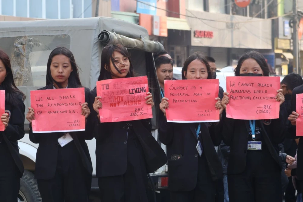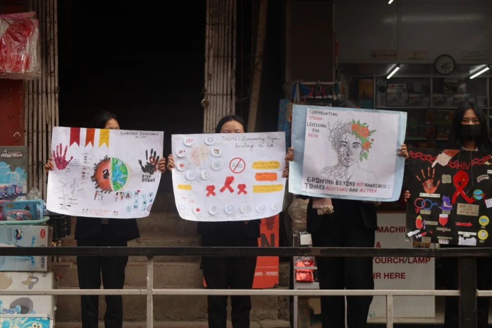 KOHIMA, February 25 (MExN): In response to Nagaland recording the second-highest adult HIV prevalence rate in the country, the Red Ribbon Club of Don Bosco College Kohima, in collaboration with the Nagaland State AIDS Control Society (NSACS), organised an HIV & AIDS awareness drive under the theme “Surmounting Stigma, Leveling the Path.” It was held at Old NST, Main Town Area, Kohima on February 25.