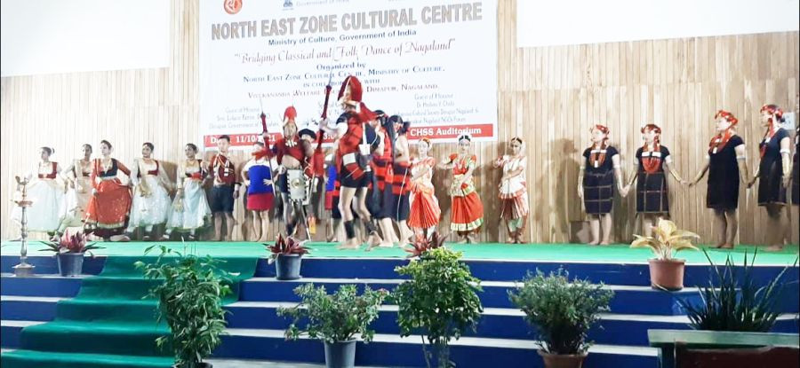Dimapur, October 11 (MExN): To honour and celebrate the diverse culture of India, North East Zone Cultural Center (NEZCC) Ministry of Culture, Government of India in collaboration with Vivekananda Welfare Foundation (VWF) organised ‘Bridging Classical and Folk Dance of Nagaland’ event at Christian Higher Secondary School Auditorium, Dimapur.