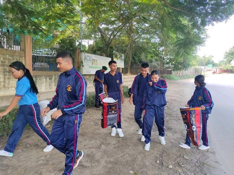 The cleanliness drive commenced from the college gate and continued up to Chathe River Bridge. Prior to the start, the cadets assembled at the college to prepare for the day’s activities. The cadets were equipped with 10 sacks donated by Promod.