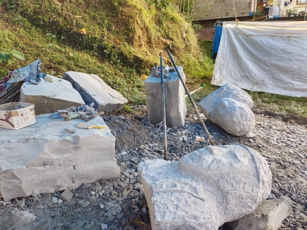 In a backyard in Mokokchung town, the sharp rhythm of chisel meeting stone punctuates the still afternoon. Dust gathers in the air as fragments of rock fall away, slowly revealing the curve of a shoulder, the suggestion of a face. Here, among heaps of stones hauled in by dumper trucks, 39-year-old Wapang Ozukum works with steady patience—one strike at a time, chiselling permanence into impermanence.