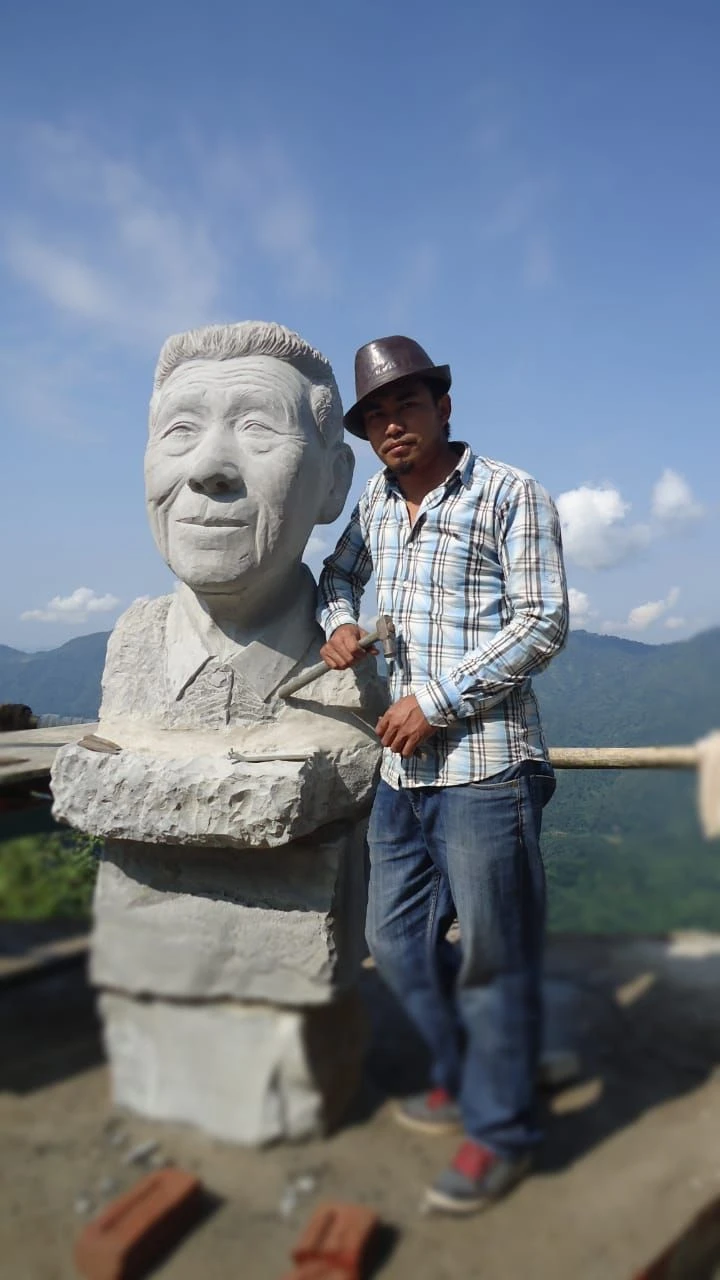 He remembers his first breakthrough in 2013 in Chungtia village, where he sculpted a bust of the longest-serving pastor to commemorate the church centennial. “No one taught me,” he says. “I experimented, failed, and studied until I succeeded.”