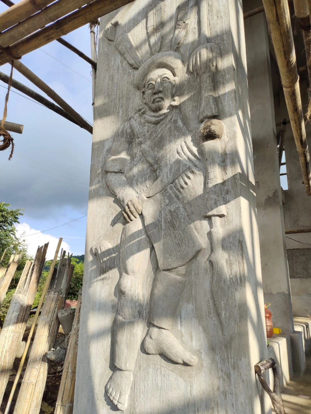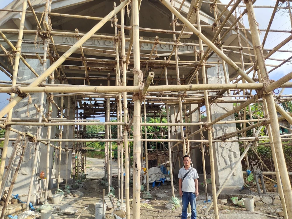 From across the valley of Longsa village, another craftsman chips away at history. Tali Imdonger, 47, is at work on a monumental gate in Khensa village, shaping human figures that will stand guard at the entrance, smiling, welcoming, and strong.
