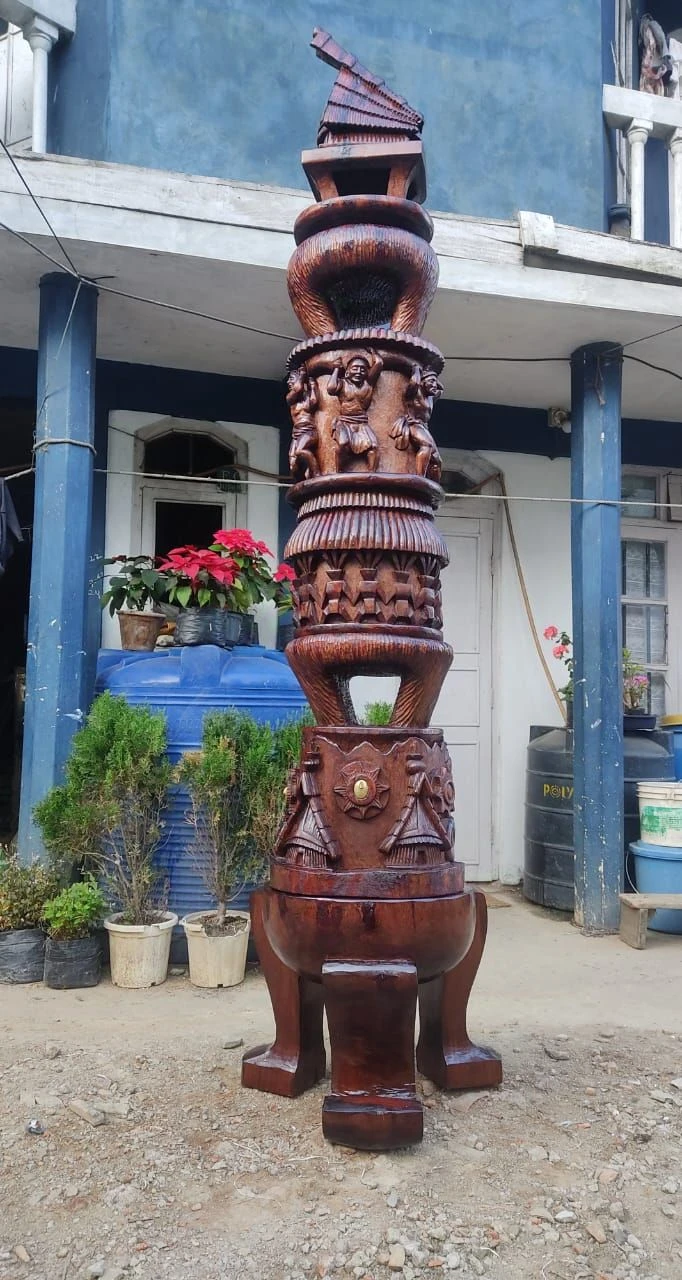 In Mopungchuket, Lepden’s sculptures stand among the trees, half myth, half philosophy, while across the hills, Wapang’s stone busts and Tali’s carved gates mark villages like silent sentinels. Each chisel strike, each curve of wood, is both labour and prayer, a refusal to forget.