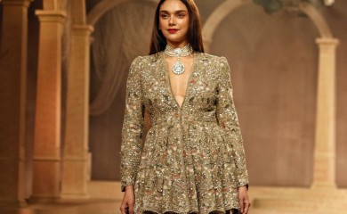 New Delhi, July 30 (IANS) Actress Aditi Rao Hydari dazzled as the showstopper for fashion designer Jayanti Reddy's collection at the FDCI India Couture Week.Aditi exuded elegance and royalty in a golden sharara