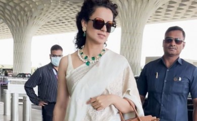 Mumbai, April 30 (IANS) Actress Kangana Ranaut was spotted at the Mumbai International Airport on Sunday jetting off to Haridwar. She would be attending the Ganga Aarti. Donning an ivory coloured saree, the act